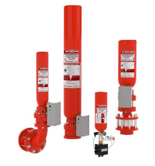 Os Interceptor®-HRD Suppression Bottles são uma solução aprovada pela ATEX e compatível com a NFPA para mitigar os efeitos de uma deflagração de poeira combustível. Esses Cilindros de supressão são semelhantes em design aos extintores de incêndio: são cilindros pressurizados que contêm um propulsor de alta pressão (nitrogênio) para expelir um supressor (normalmente bicarbonato de sódio) a uma taxa muito rápida. Esses Cilindros de supressão são instalados em máquinas industriais que lidam com poeira combustível e atuam como uma proteção para esse equipamento no caso de ocorrer uma deflagração de poeira, pois serão ativados e reduzirão os efeitos a um nível tolerável.
